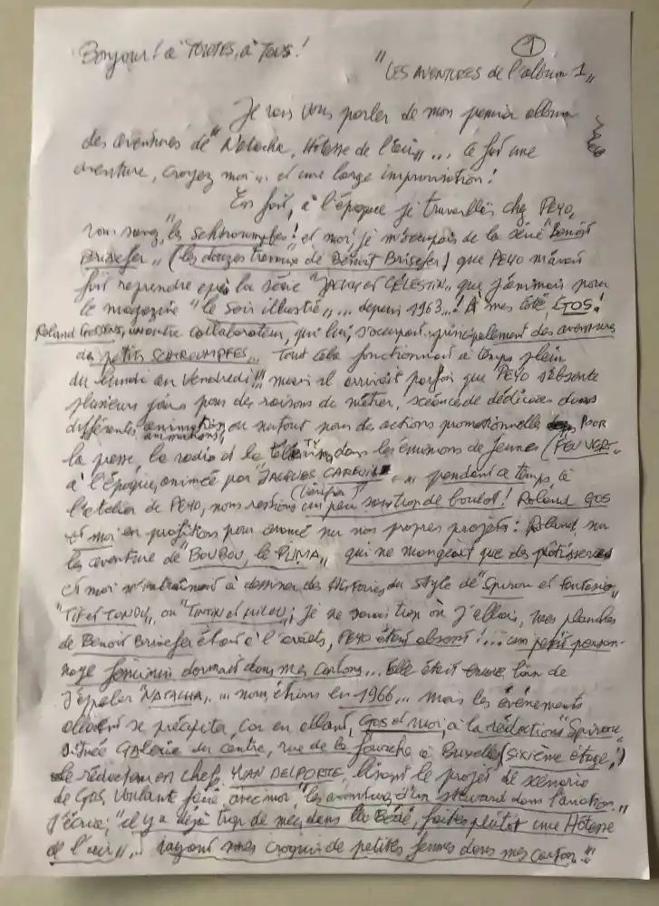 Ce qu’on ne savait pas, c’est que cette première aventure était partie pour en faire plusieurs autres. Ceci, c’est une autre histoire, évidemment mais cela rassurera Peyo car il pouvait s’absenter et Roland et moi ne serions pas sans travail !
